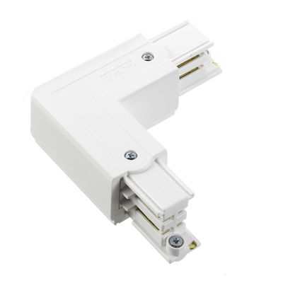 L -kulmapala XTS34 3-vaihekiskoon, Valkoinen. Huom. tilaustuote, ei valmiiksi varastossa. Tämä 66 mm x 66 mm kokoinen 3-vaihekiskon L kulmapala on tarkoitettu asennettavaksi katon sisään tulevaan kiskoon tai pinta-asennukseen. Tällä palalla teet siis 90 asteen kulman 3-vaihekiskolle, mutta tark...