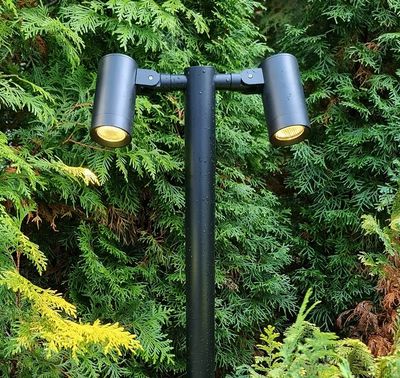 PILARI TILT 2 valaisimen päät ovat vapaasti suunnattavia, jonka ansiosta valaisimella voidaan valaista esimerkiksi sekä kulkuväylää, että istutuksia. Valon kantama n. 4 metriä.